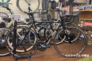 ジオスのクロモリロードバイク 細いパイプを使ったフレームはおしゃれですっきりとした見た目です 変速、ブレーキ類はシマノのクラリスを採用。 タイヤは700×25cで昨今のロードバイクの中では細めです アルミと比べて重量はあ …